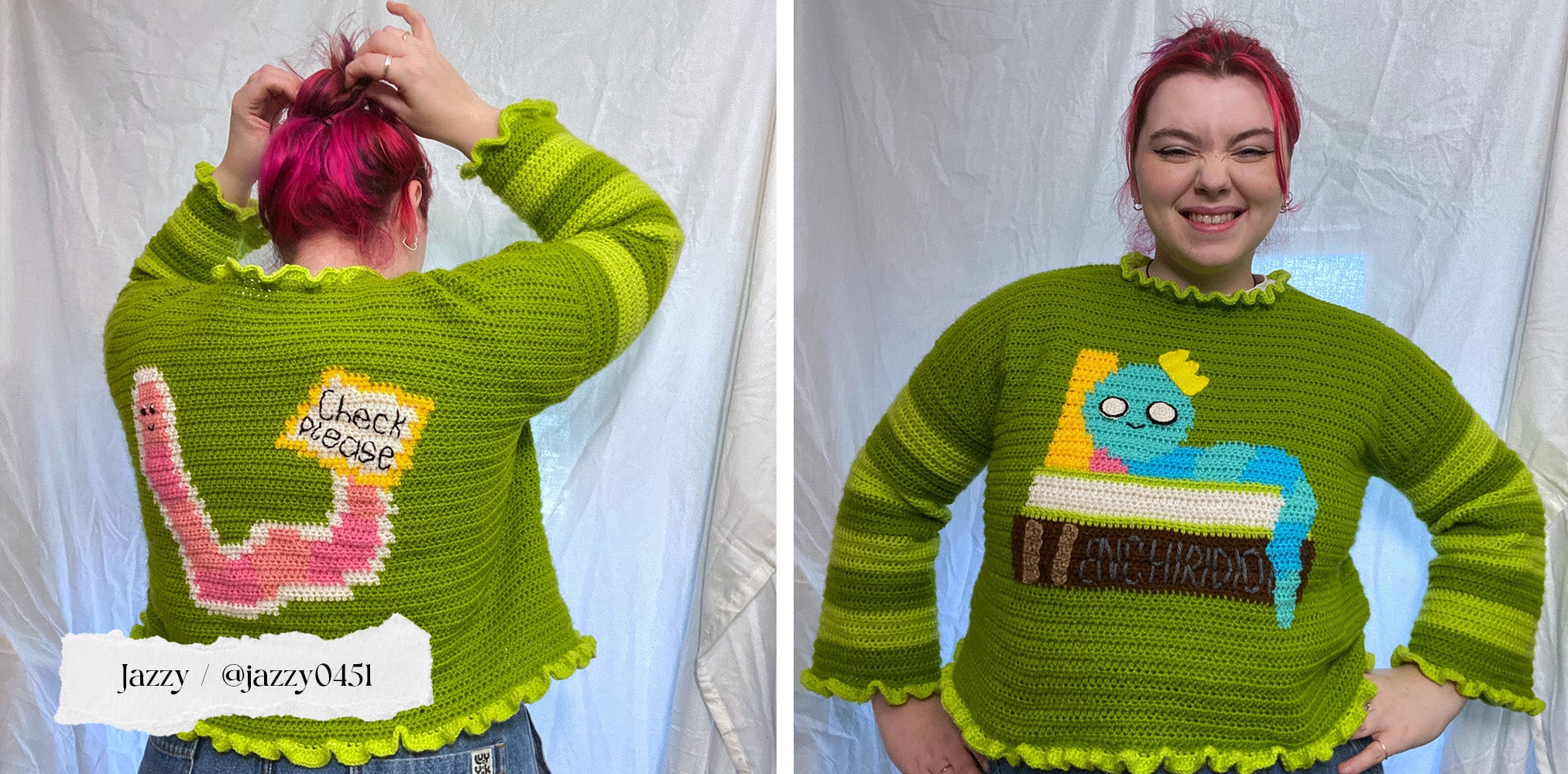 Love reading? Love crocheting? Then the Bookworm Sweater is for you! 🪱📚