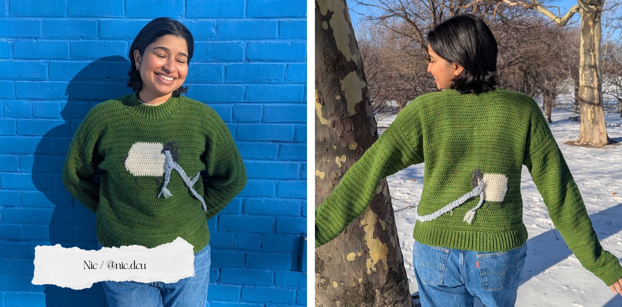 Bonus: Play around with the placement of the sheep and the shape of their scarf to make the sweater completely unique to you. The scarf is also completely removable, in case you prefer to just keep the sweater plain.