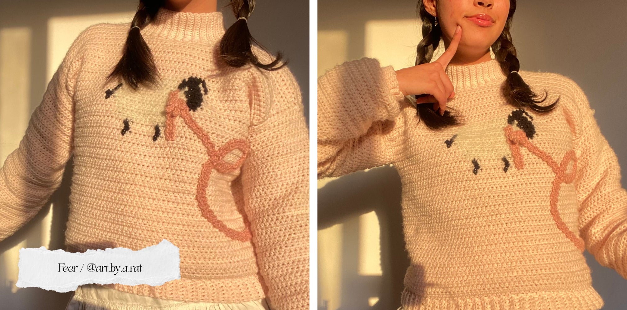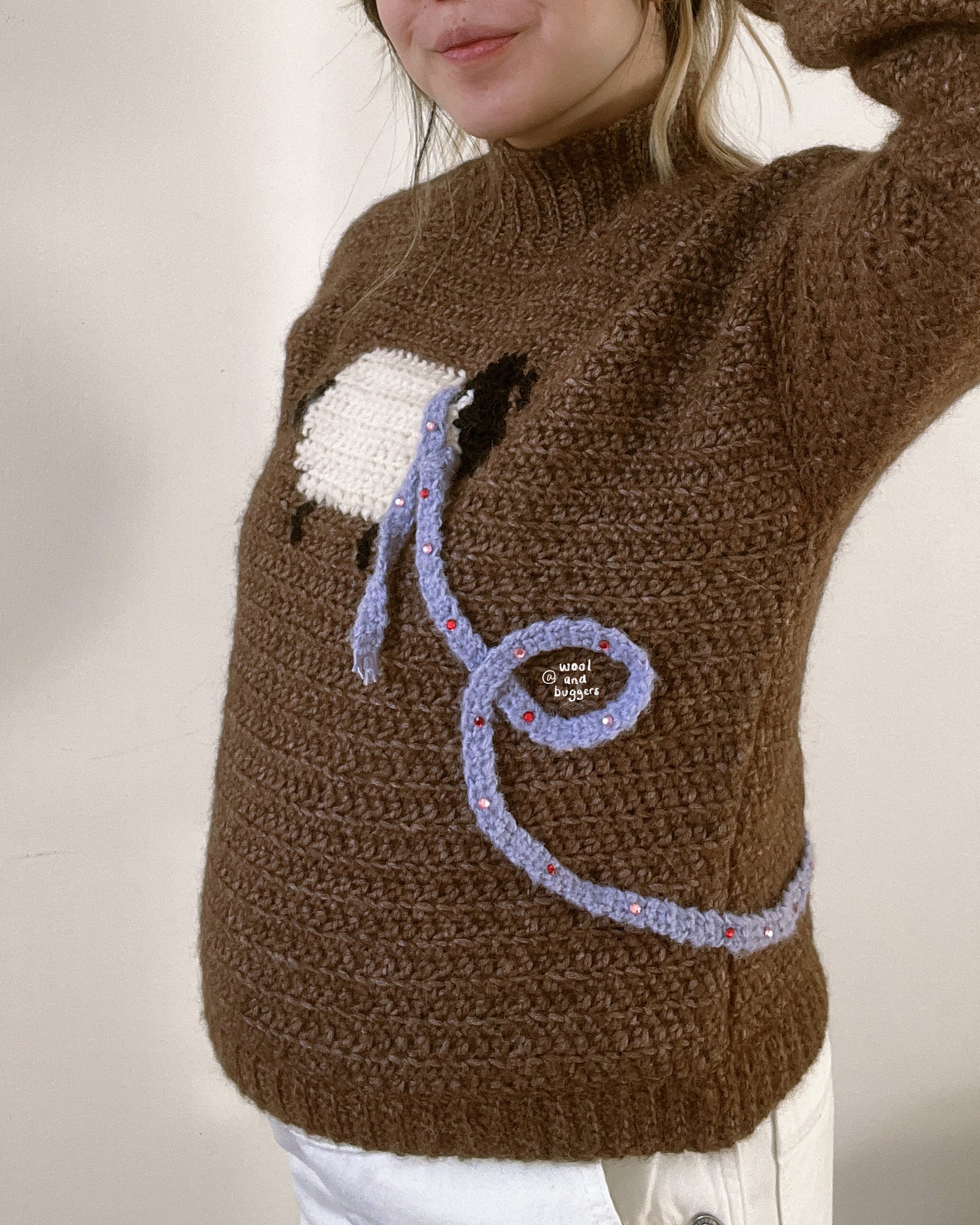 You can also embellish your scarf in different ways – why not add stripes or jewels? The scarf is also completely removable, in case you prefer to just keep the sweater plain!