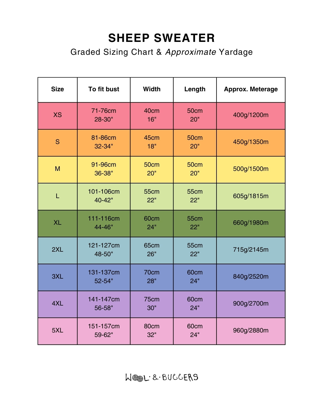 - Graded (XS – 5XL)